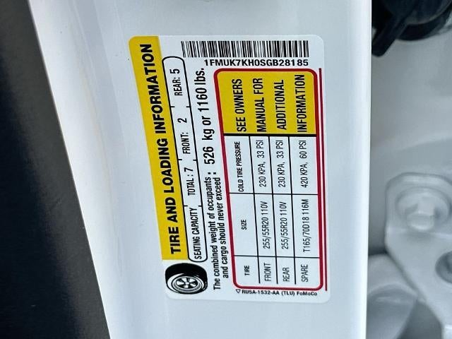 Premium Package: 110V/150W AC Power Outlet; Auto-Dimming Interior Rearview Mirror; Memory Driver's Seat; Power-Folding Sideview Mirrors with Autofold; Rain-Sensing Wipers (front Only); Ambient Lighting; Wireless Charging Pad; 2nd Row Heated Seats. Equipment Group 300A Standard Package: 20" Ebony-Painted Machined Aluminum Wheels; 3.58 Non-Limited Slip Rear Axle; 10-Speed Automatic Transmission; Heated Unique Cloth Captain's Chairs; 2.3L EcoBoost I-4 Engine; P255/55R20 AS BSW Tires; B&O Sound System by Bang and Olufsen. Star White Metallic TC. **Equipment listed is based on original vehicle build and subject to change. Please confirm the accuracy of the included equipment by calling the dealer prior to purchase.**